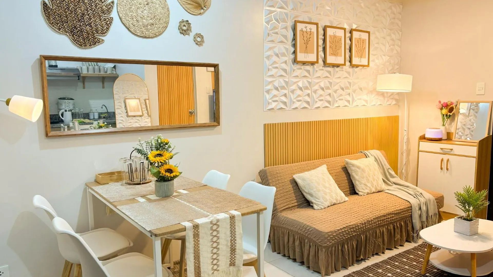 As comodidades de auto-atendimento possuem cozinha totalmente equipada que inclui chaleira elétrica, refrigerador e utensílios de cozinha. Este apartamento está a uma distância de apenas 10 minutos a pé da paragem Mandaue Foam.